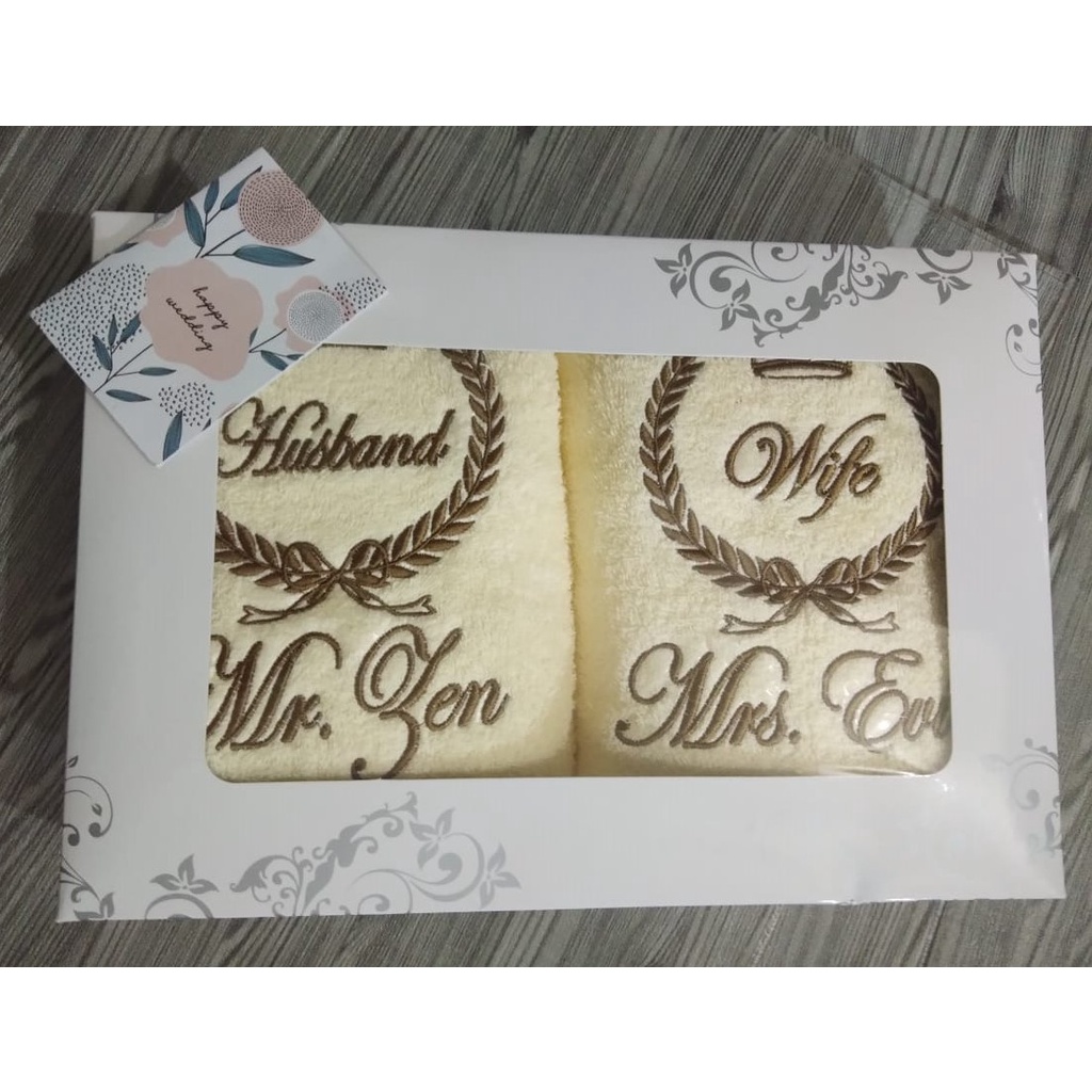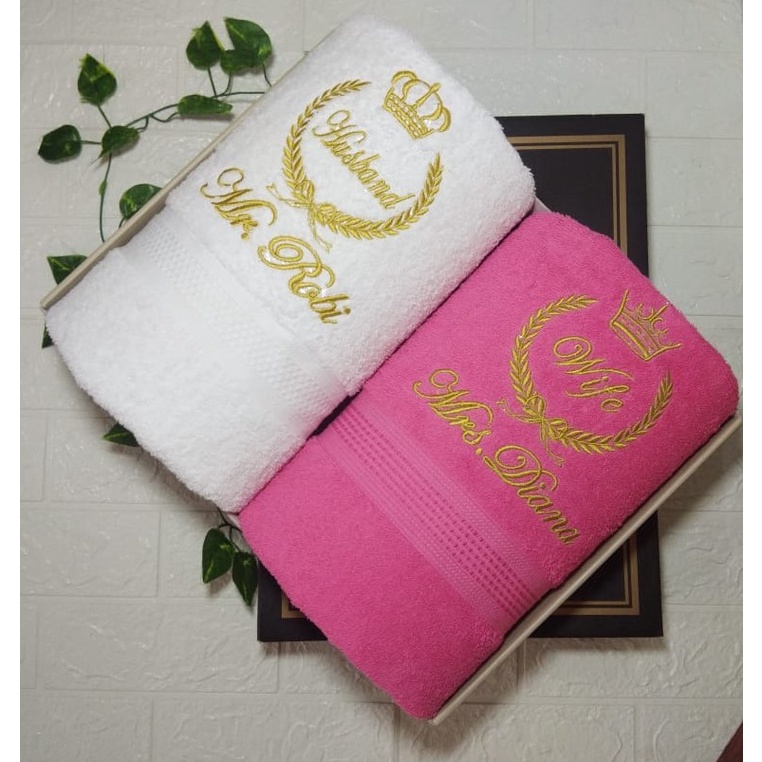 [PROMO] Paket Handuk Couple Wedding Gratis Bordir - 2pcs (Couple) Handuk Mandi Ukuran 70X140- Kado Handuk