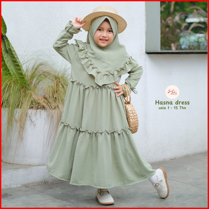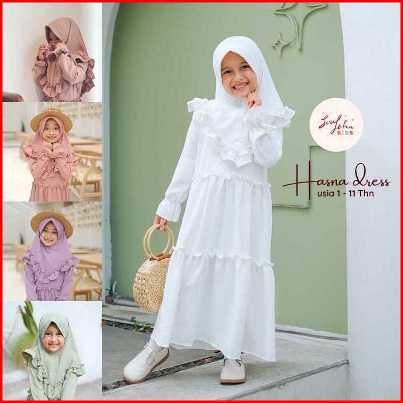 Soulleha Set Gamis Putih Manasik Haji Anak Tk Sd Smp Hasna Crinkle Airflow Premium 1-11 Tahun