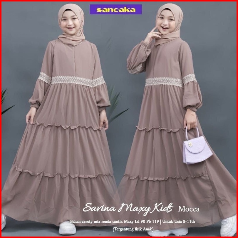 Gamis Anak Remaja Perempuan Ceruty Usia 8-9 -10-12 -14-15-16 -18 Savina Dress Gamis Anak Tanggung..