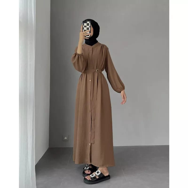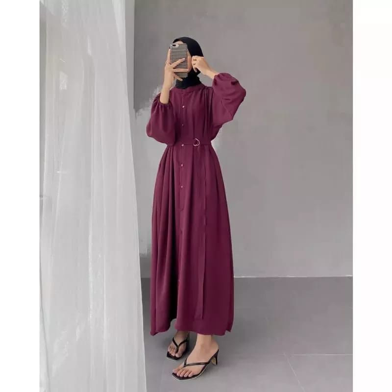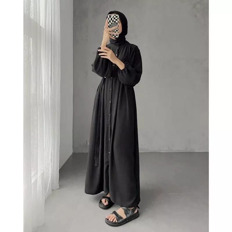 (Gratis Ongkir) Loca Dress Gamis Full Kancing Crinkle Airflow LD 110 // Gamis Polos Crinkle // Gamis Muslimah
