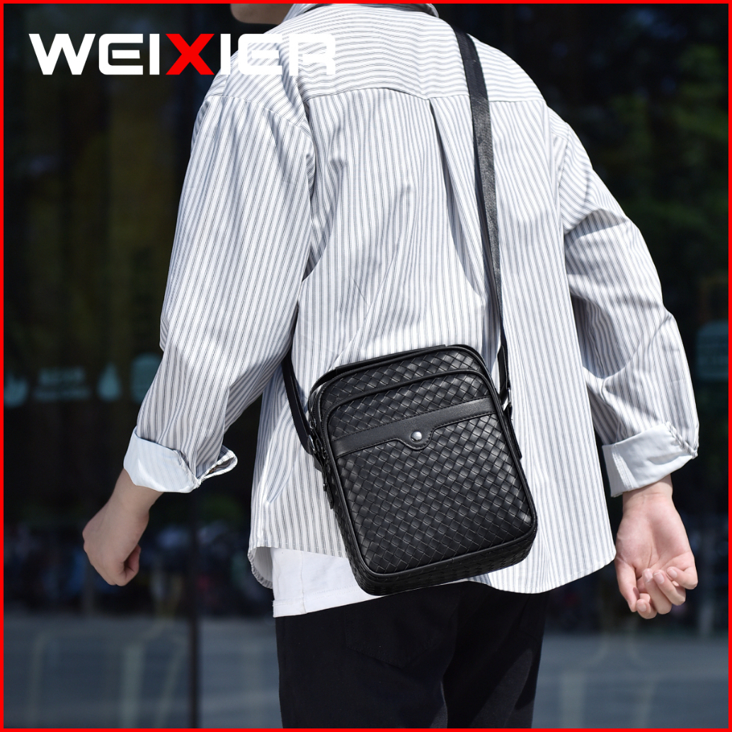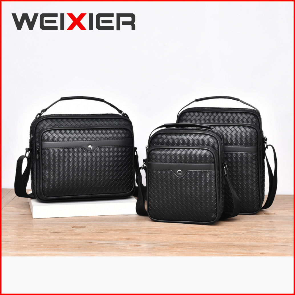 Weixier D281 2 Tas Selempang Pria Kulit Anyaman Sling Bag Premium Anti Air Wx-os