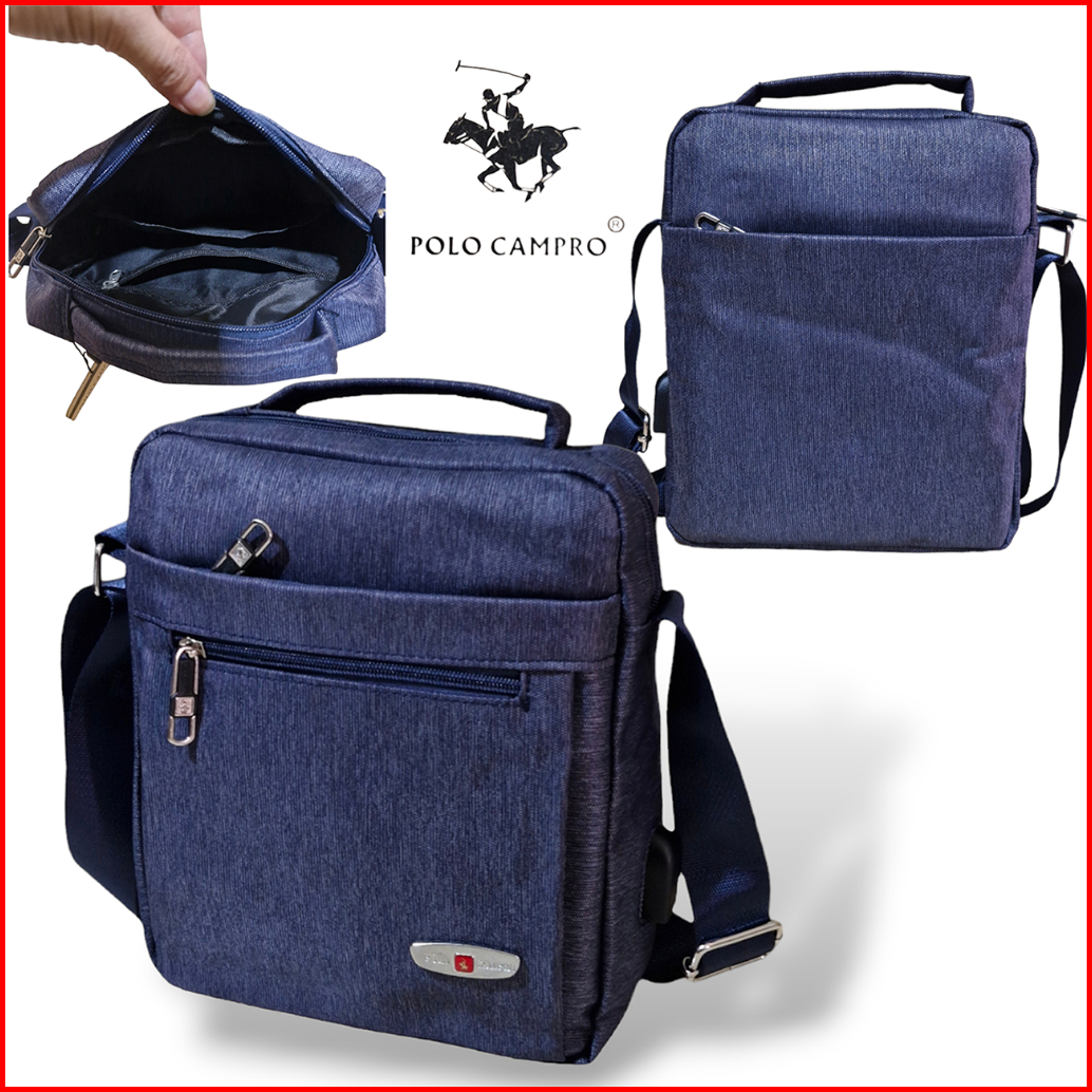 Tas Selempang Polo Campro Tebal Import Slingbag Pria Ukuran L Dan M Dengan Port Usb