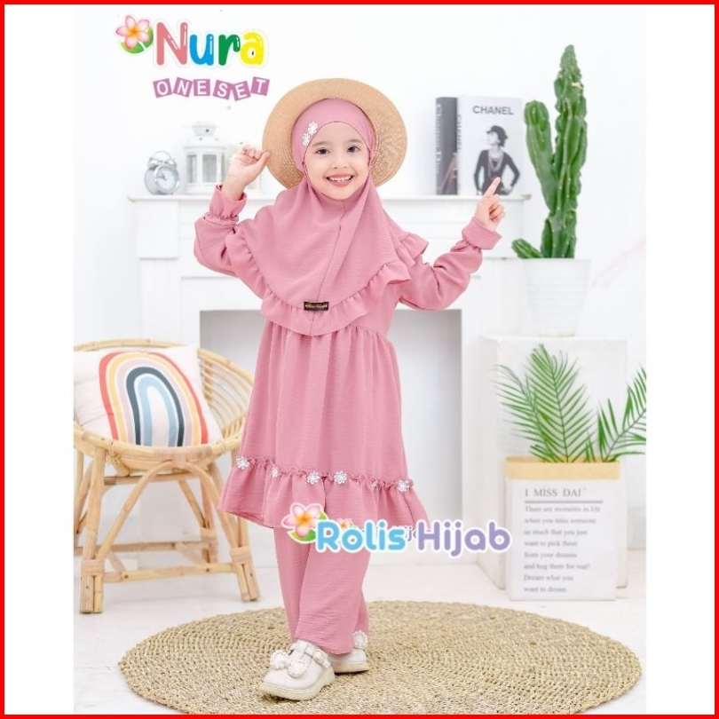 Rolis Hijab Nura One Set Setelan Anak Perempuan Baju Anak Perempuan Gamis Anak Gamis Muslim Anak
