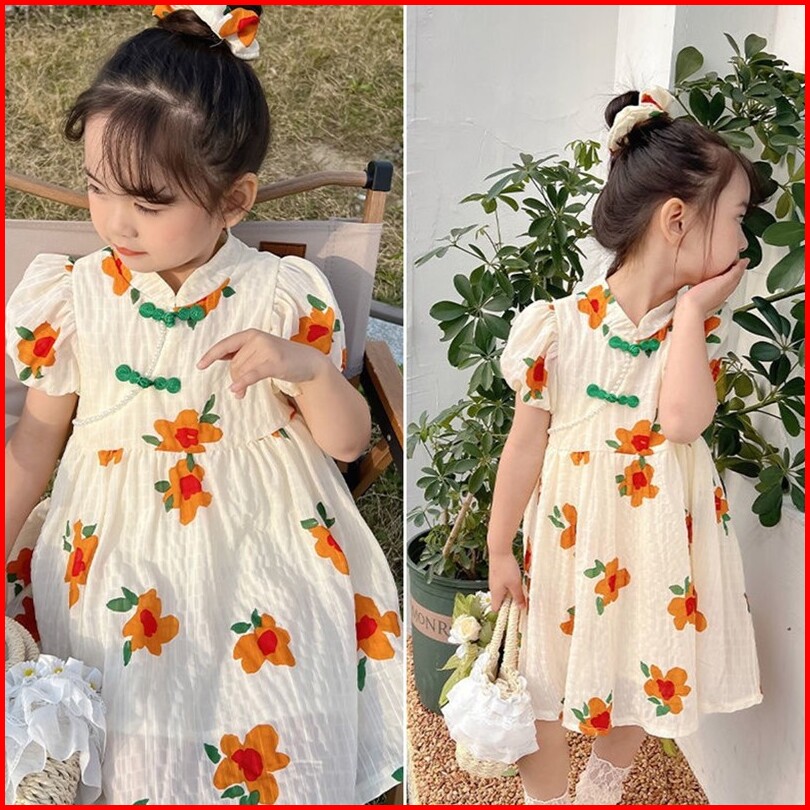 Kidsfashionkoleksi Dress Anak Perempuan Cheonsam Retro Line Shanghai Import