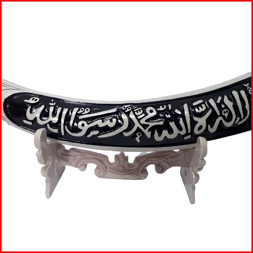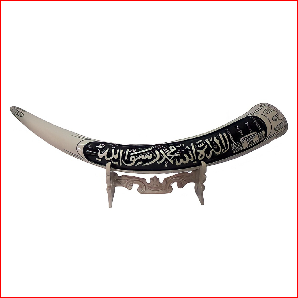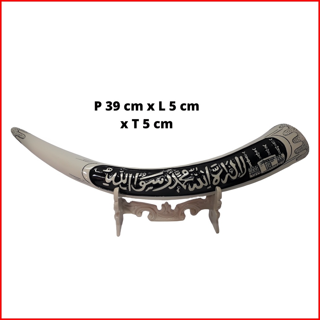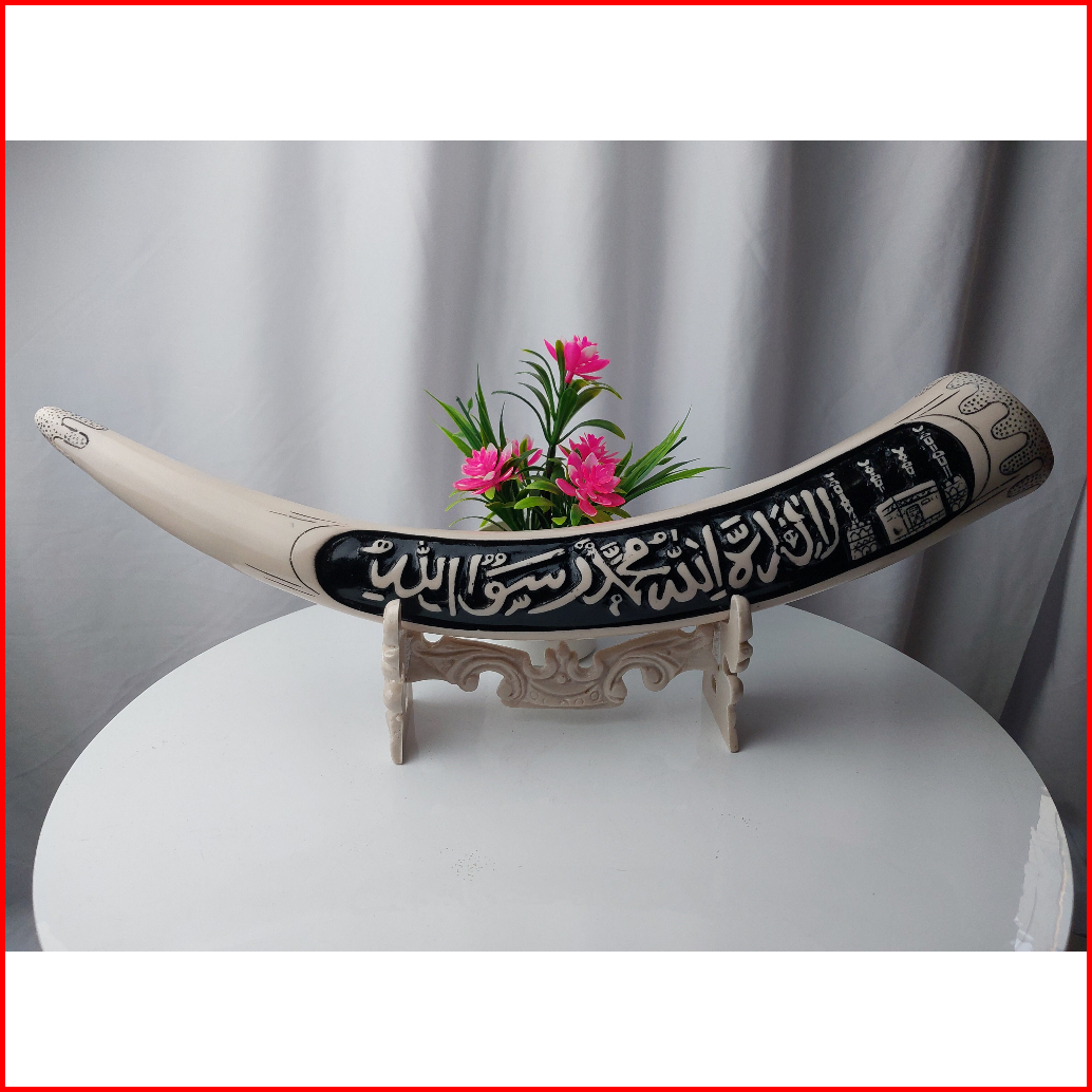 Pajangan Dinding Aesthetic Hiasan Meja Lemari Kaca Kaligrafi Replika Taring Gading Gajah Kalimat Tauhid Putih
