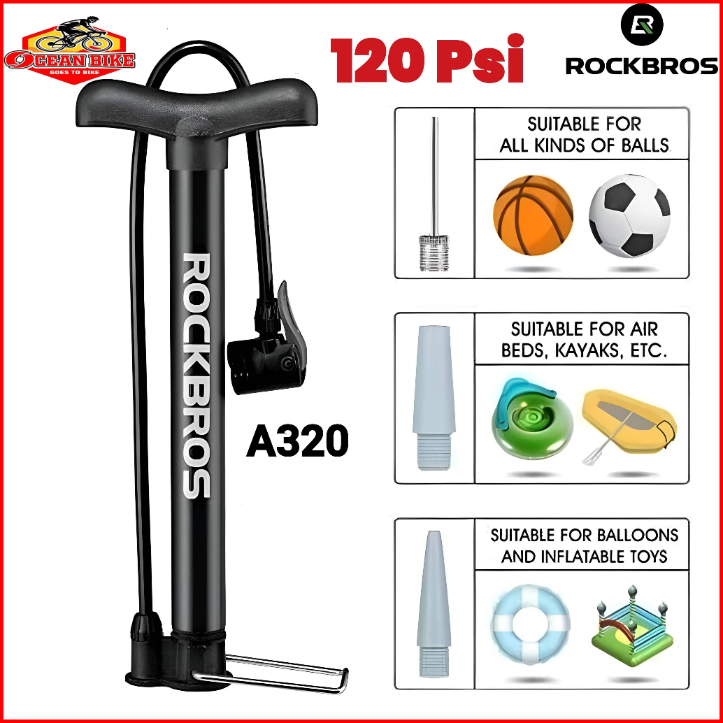 Rockbros Pompa Sepeda Motor Ban Bola Angin Bike Air Pump Portable A320 120 Psi