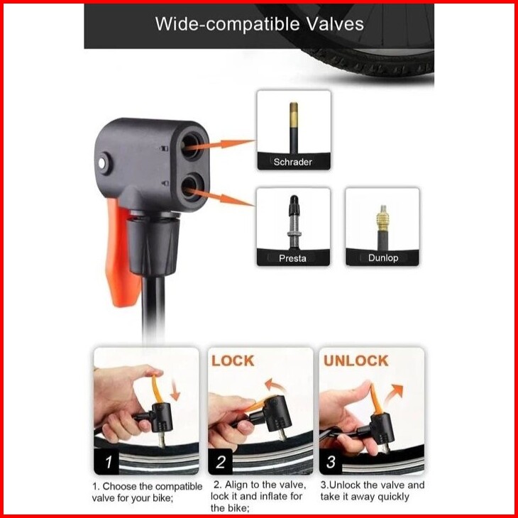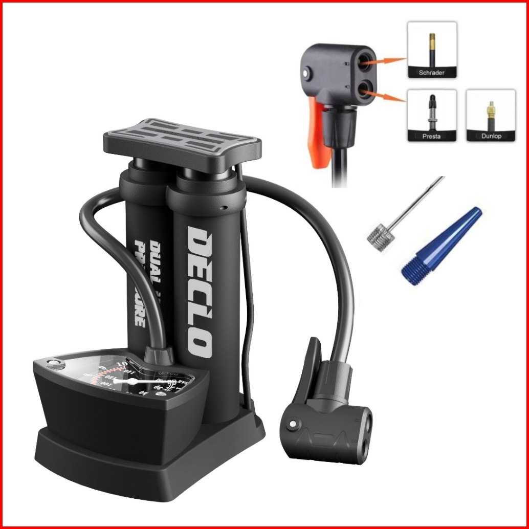 Pompa Sepeda Motor Mobil Declo X99 Dual High Pressure Alloy Pentil Schrader Dan Presta Pompa Injak Strong Portable Pump