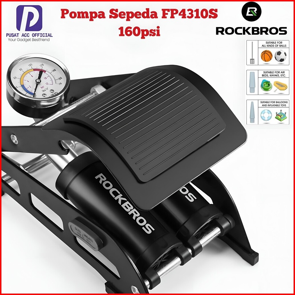 Pompa Ban Motor Injak Rockbros Fp4310s 160 Psi Pump Sepeda Pentil Besar Kecil Bola Ban