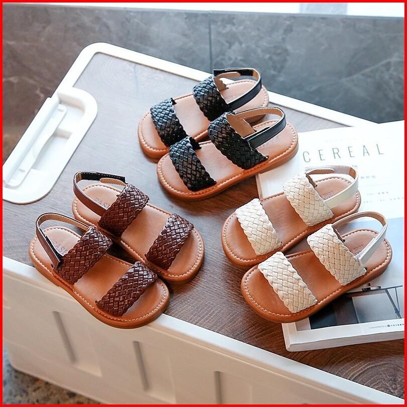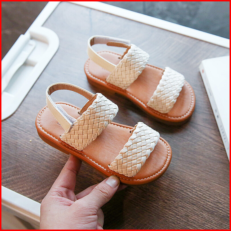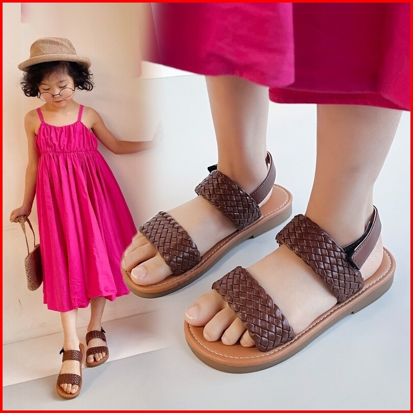 Sandal Tenun Anak Perempuan Sepatu Pantai Anak Sederhana Dua Tali Sol Lembut Ukuran 21-34