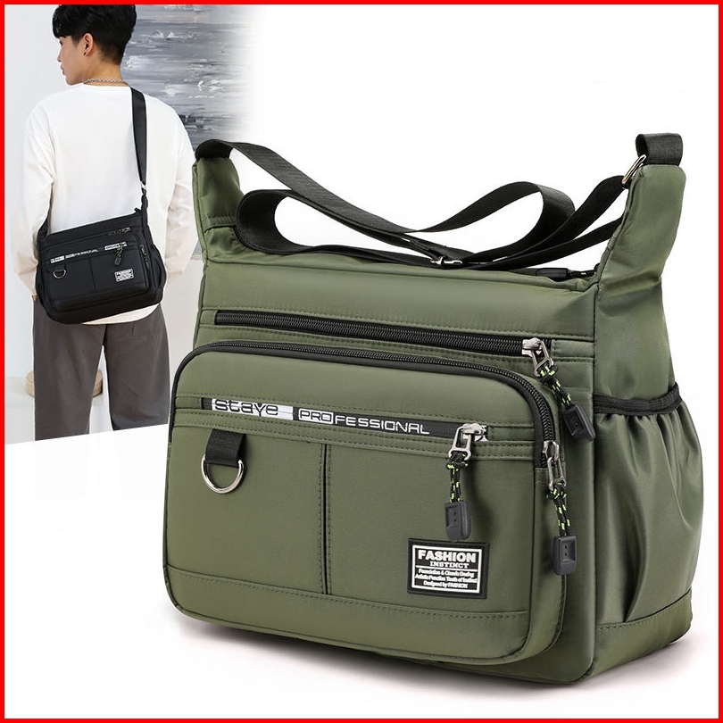 Ht Tas Bahu Kanvas Pria Kasual Multipocket Tas Selempang Impor Fashion Pria