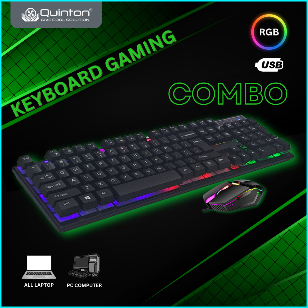 Quinton Keyboard Combo Mouse Gaming Rgb Usb Wired Full Size 104keys For Desktop Pc Laptop Windows