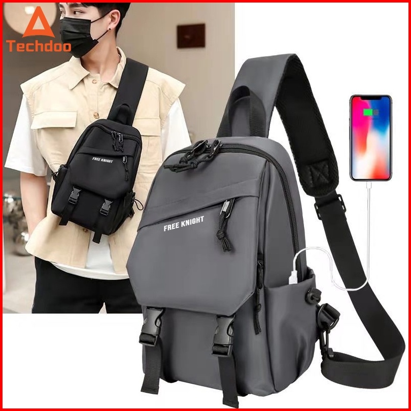 Techdoo Tas Selempang Tas Pria Dada Usb Tas Slempang Sling Bag Tas Bahu Cowok Anti Air Ts708