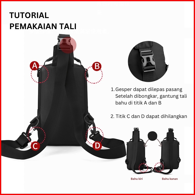 Techdoo Tas Selempang Bahu Pria Sling Bag Casual Tas Dada Ransel Multifungsi Anti Air Ts720