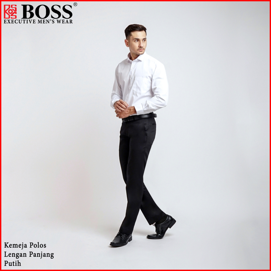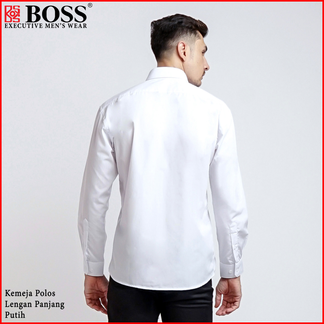 Boss Kemeja Polos Pria Lengan Panjang Putih
