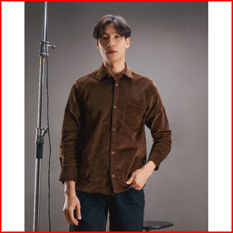 Easternwood Kemeja Corduroy Pria Lengan Panjang Polos Coklat Tua Kopi Brown