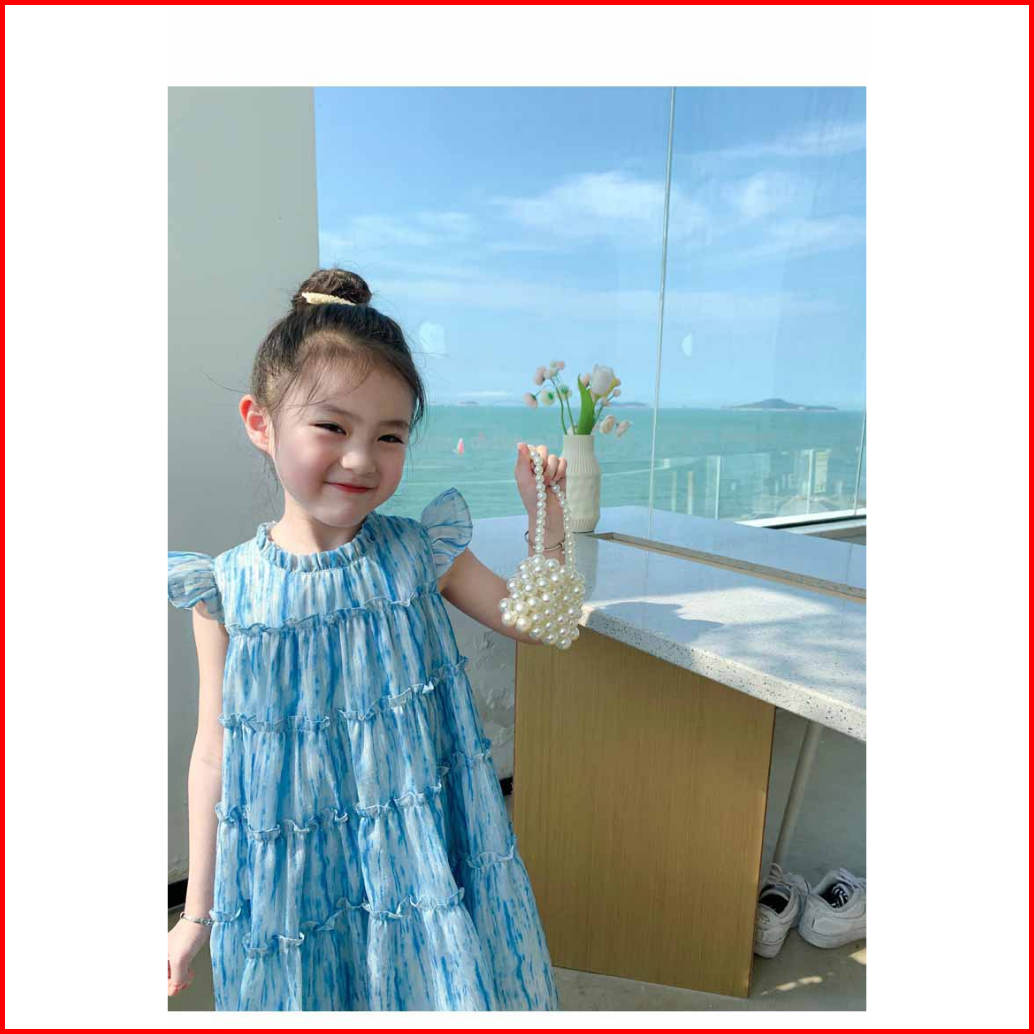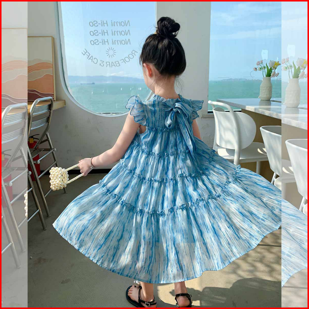 Party Dress Pesta Gaun Anak Mewah Biru Tulle Korea Style Fashion Blue Long Dress