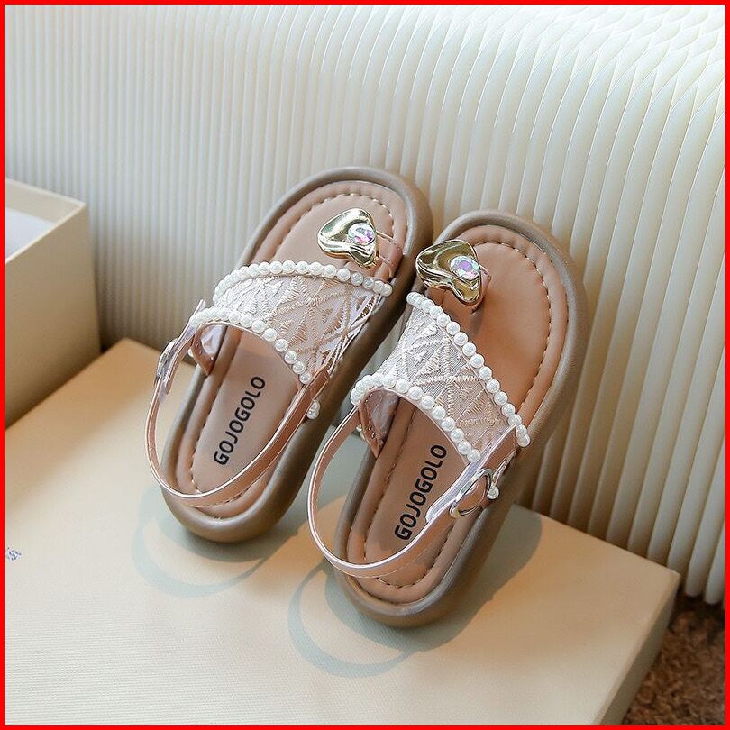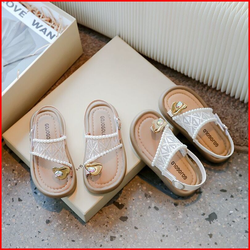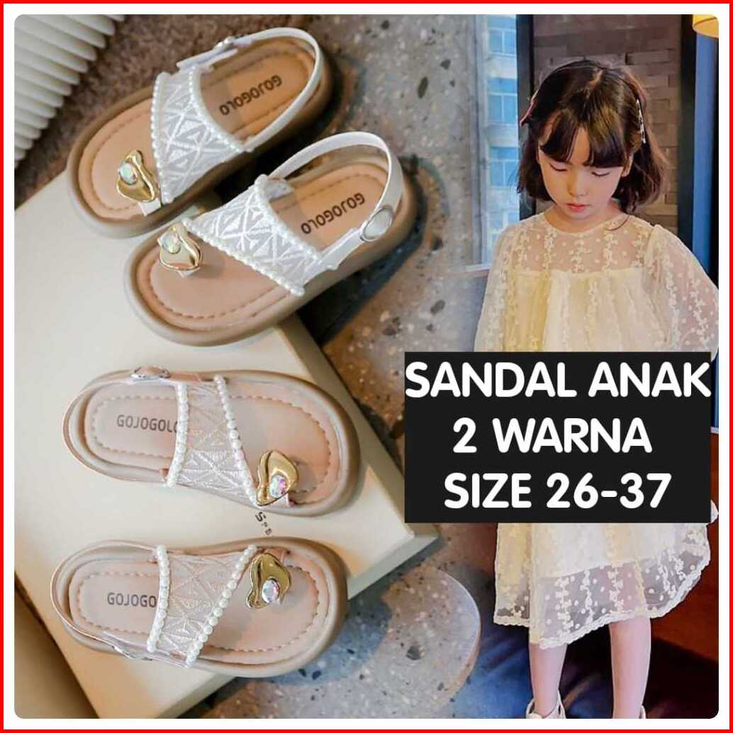 Loli-jkt Sd- Gm2 Sandal Flat Anak Brokat Tranparan Mutiara Tali Perekat Size 26-37