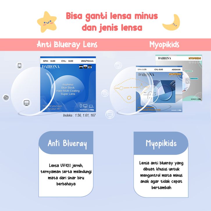 KACAMATA ANAK REMAJA BISA MINUS LENSA ANTI RADIASI ANTI BLUERAY ANTI MYOPIA KIDS FASHION PRIA WANITA BENTUK KOTAK