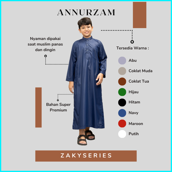 Jubah Anak Laki Laki Premium 9 - 16 Tahun Lengan Panjang Zaky Series Original Annurzam Albuchori