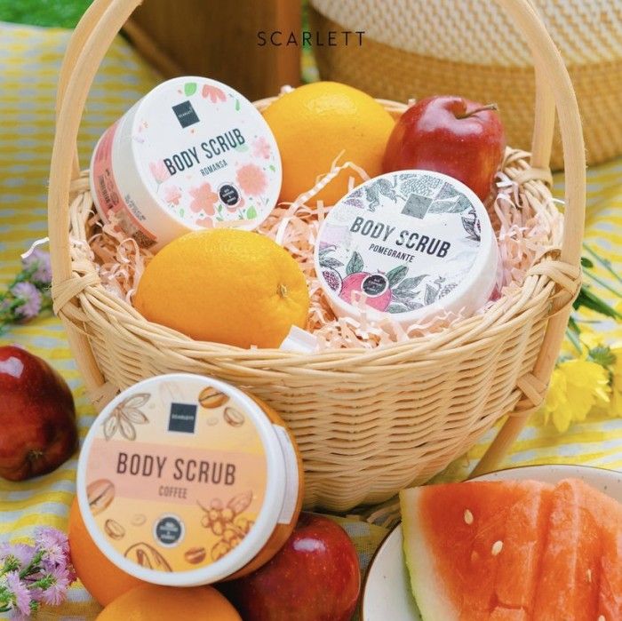 Body Scrub Scarlett Whitening Lulur Badan Romansa Happy Pomegra Coffee