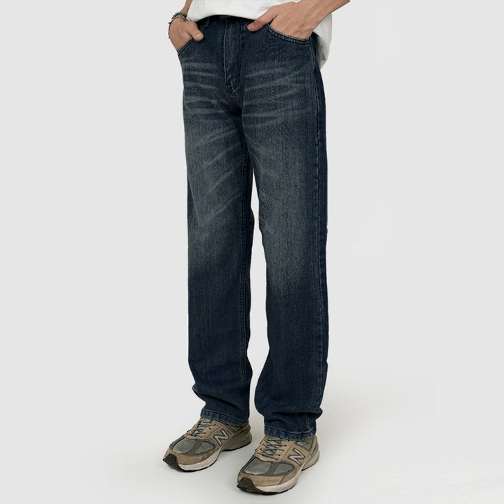CELANA JEANS REGULER NAKAMA WHISKER DARK BLACK