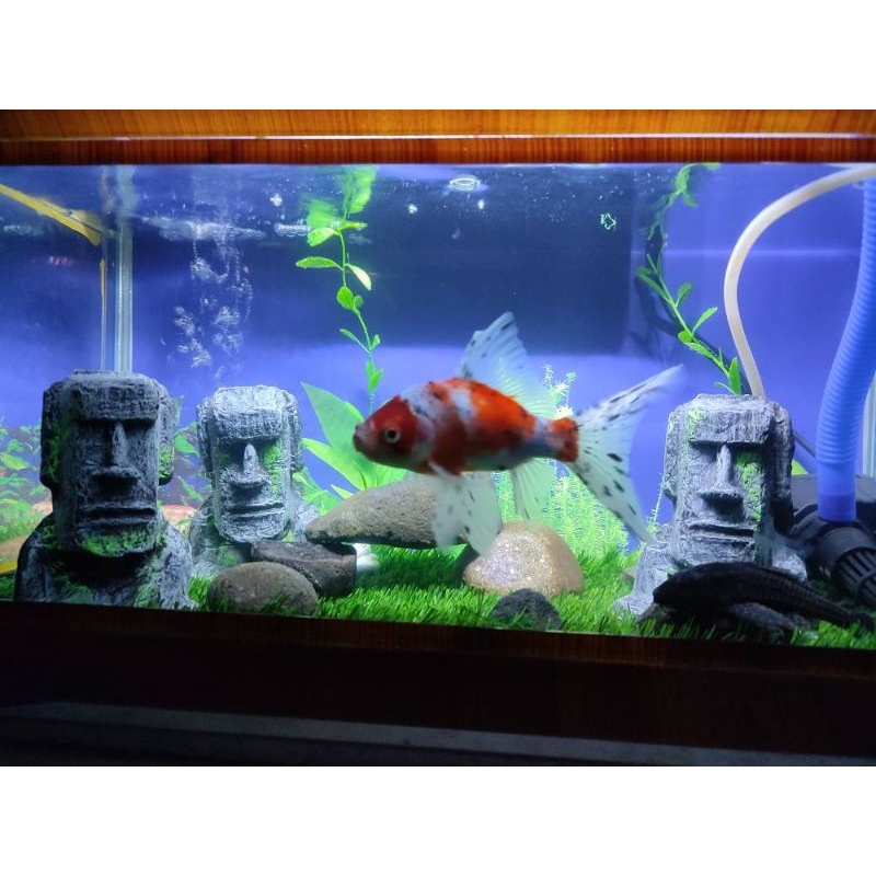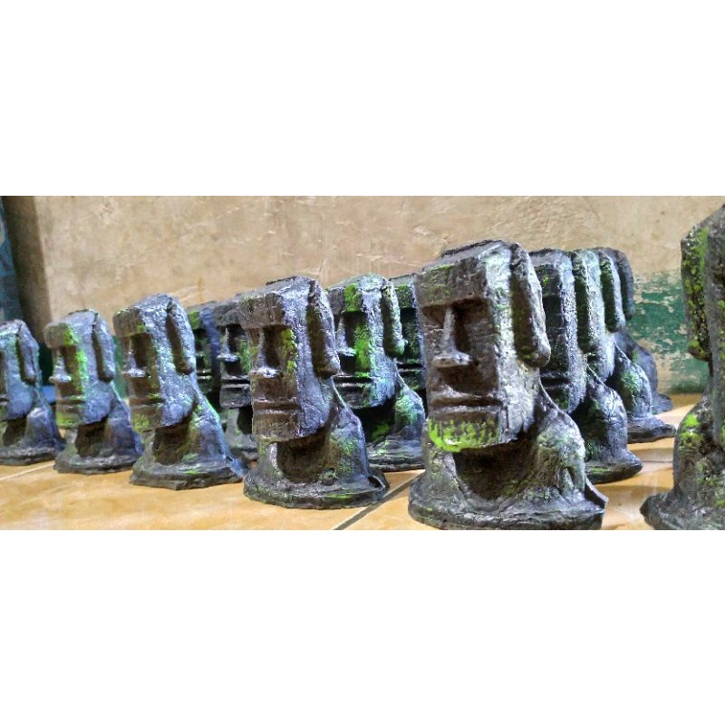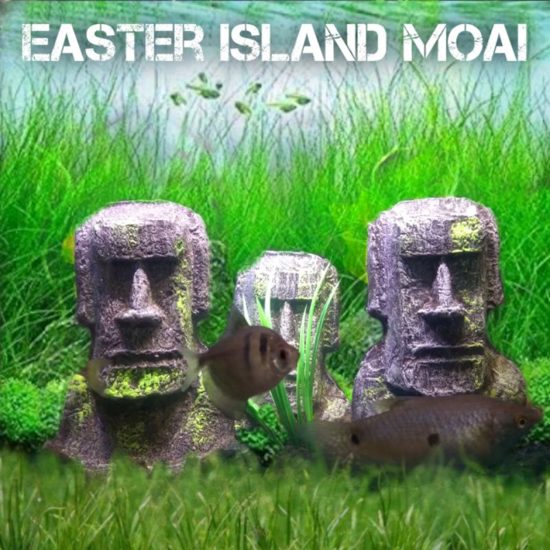 Hiasan aquarium patung moai/ patung pulau paskah chile /hiasan ruangan emot batu