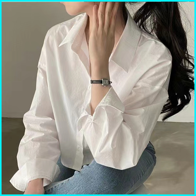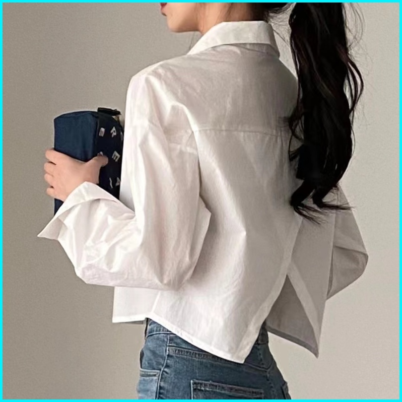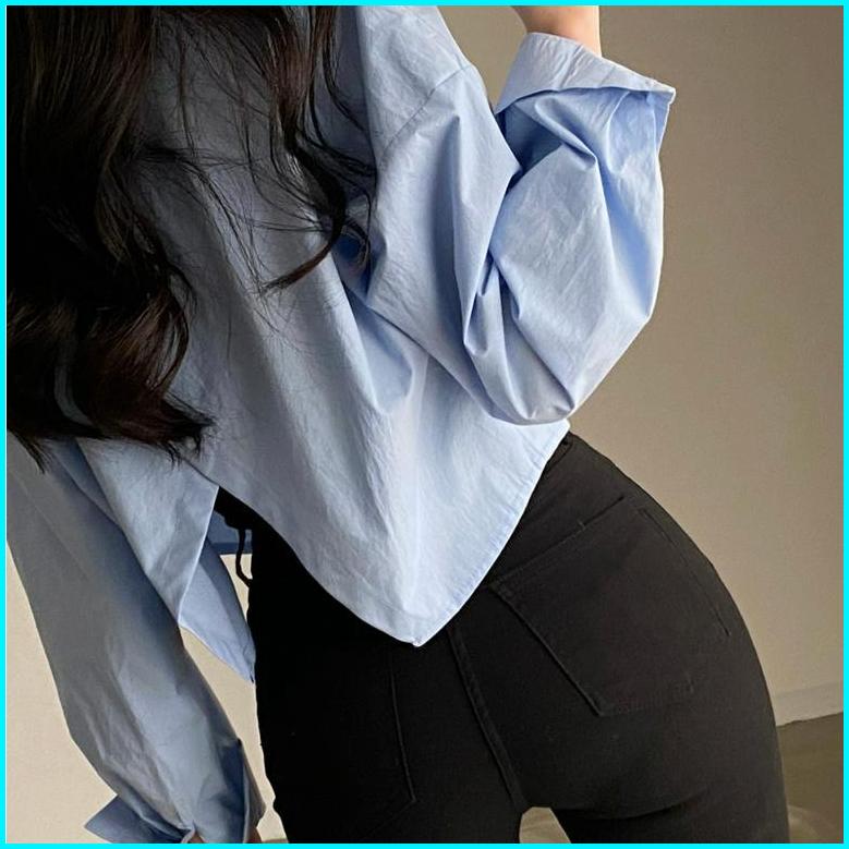 Karley - Kemeja Crop Polos Lengan Panjang Blouse Korea Kemeja Wanita Casual
