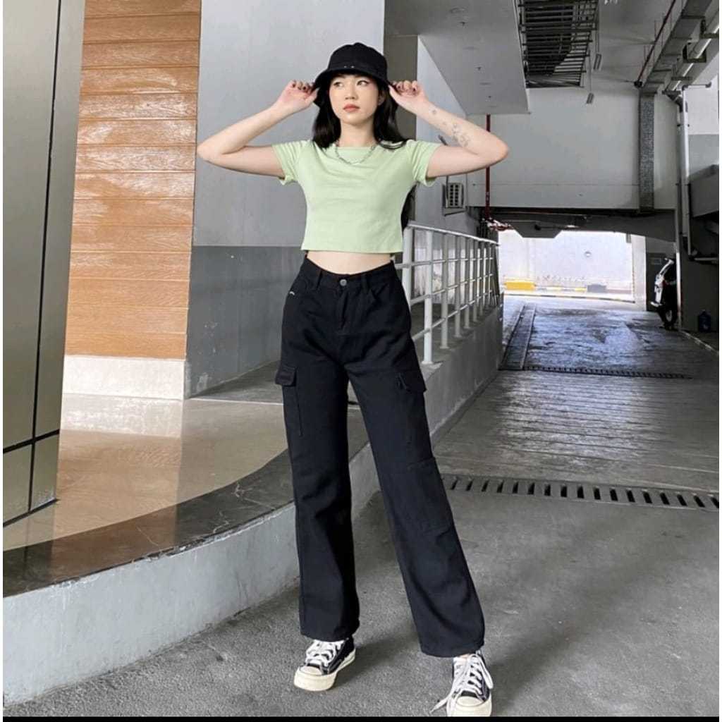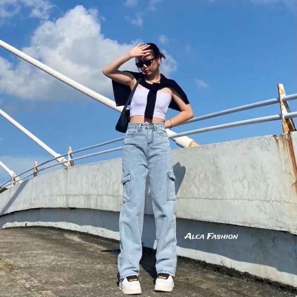 celana jeans wanita jumbo cutbray high waist cargo kulot import pendek celana cutbray jeans knit cargo pants wanita
