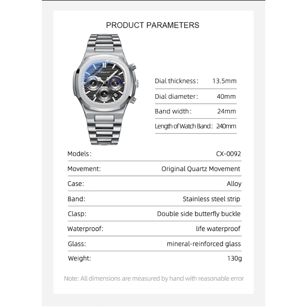 Jam Tangan Pria CHENXI 0092B Otomatis Anti Air Unik Stylish Luxury Stainless Steel Multifungsi kado Analog Tanggal Sport