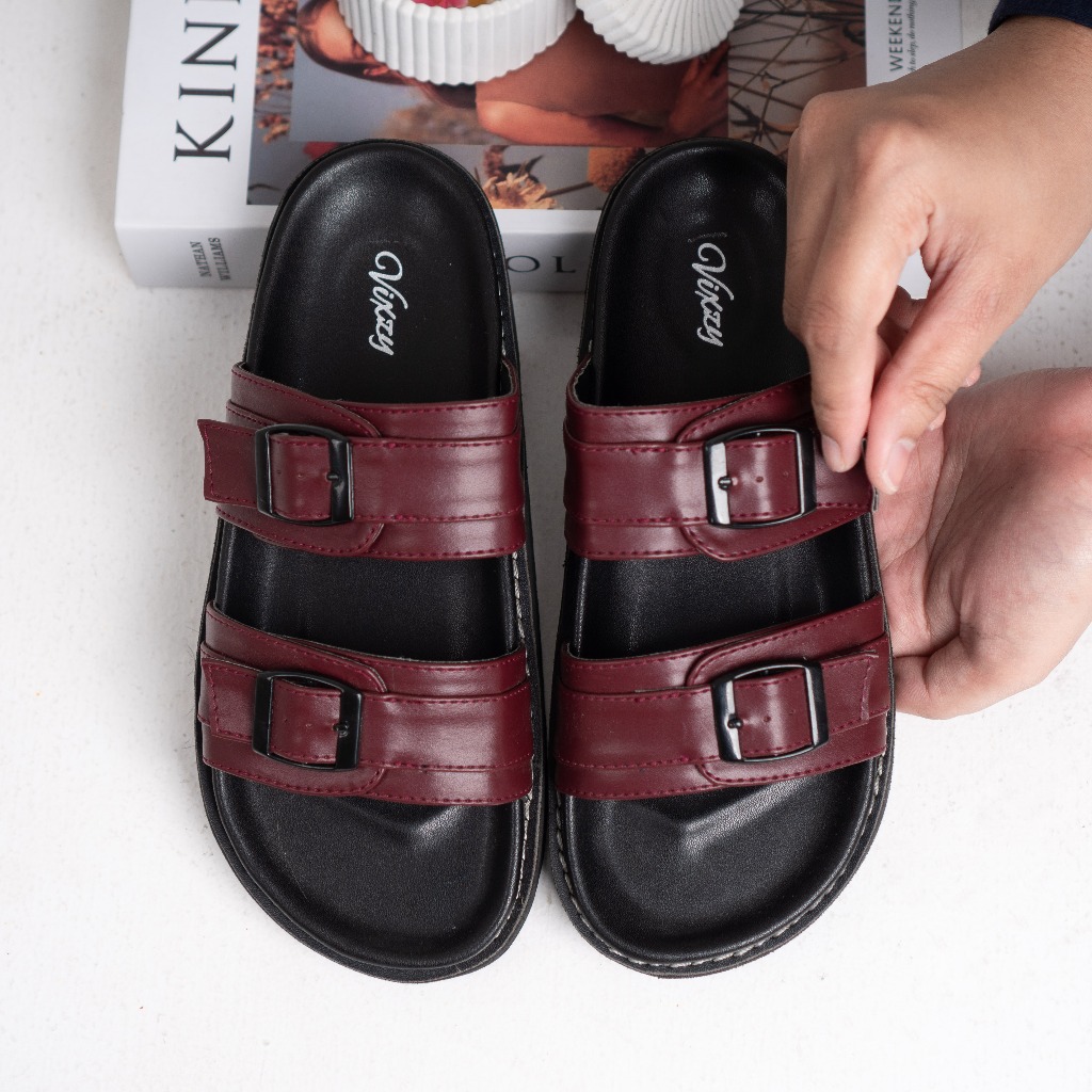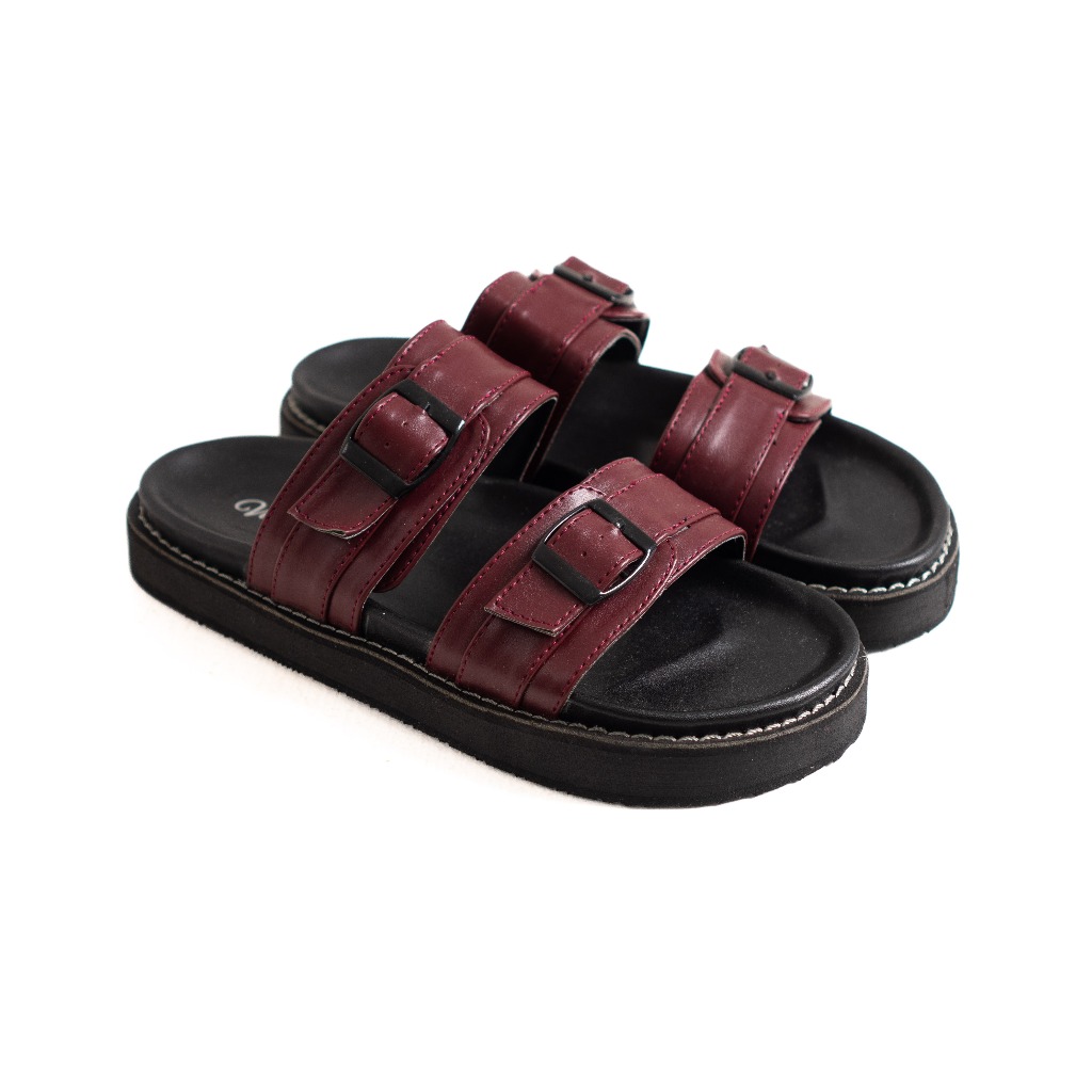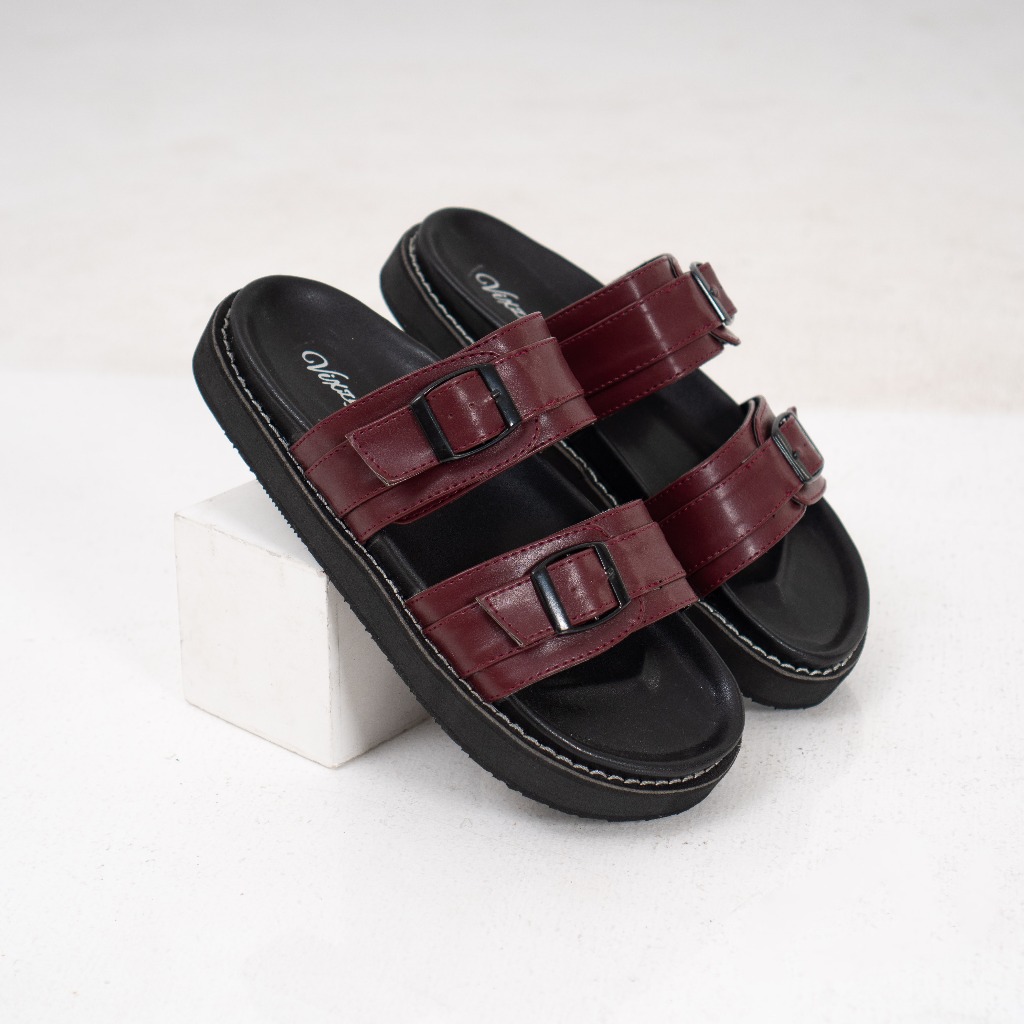 Vixzy89 Sandal Platform Wanita Estetik Tinggi 3cm Jait Sole Empuk Premium Size 36-41 - Edel Burgundy