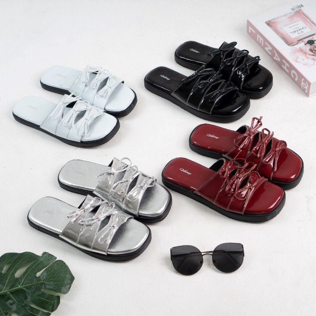 Vixzy Sandal Wanita Kekinian Model Flat Bahan Kulit Glosy Premium Ringan Awet 36-41 Shimer Series