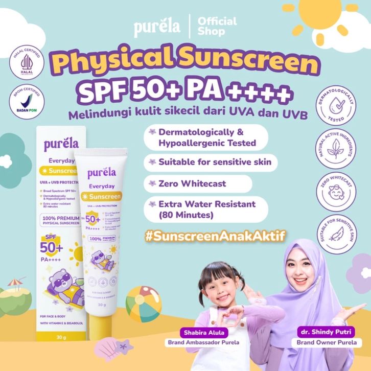 Purela Sunscreen Anak Baby & Kids 30 gr Melindungi Kulit Anak dari Paparan Sinar Matahari