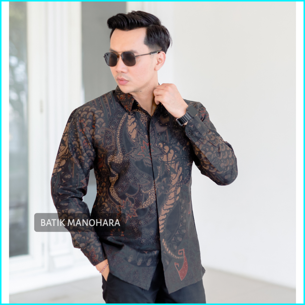 Senopati Hitam Kemeja Batik Pria Modern Premium Lengan Panjang Full Furing Halus