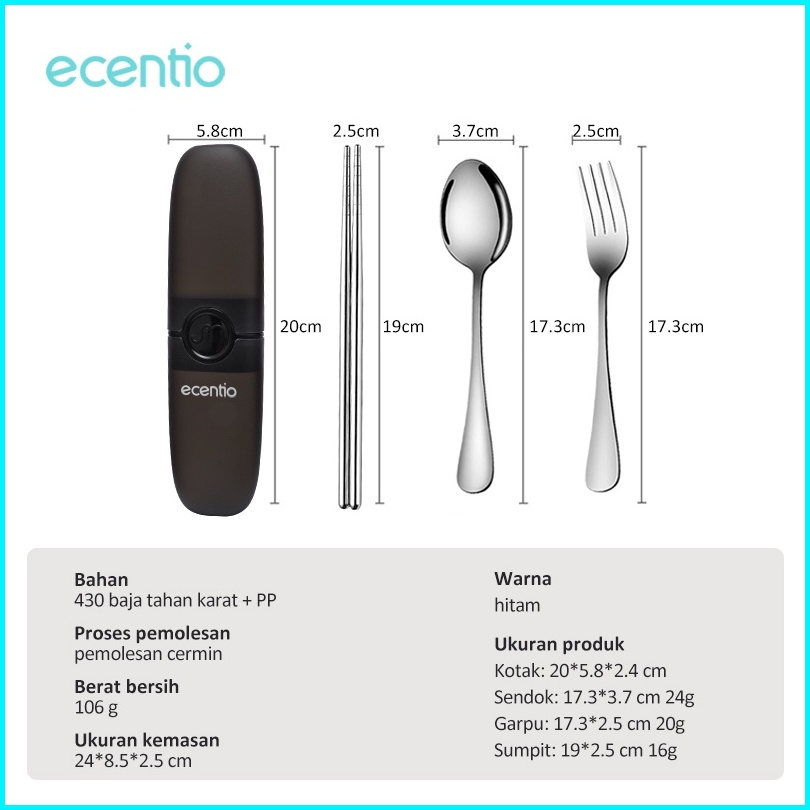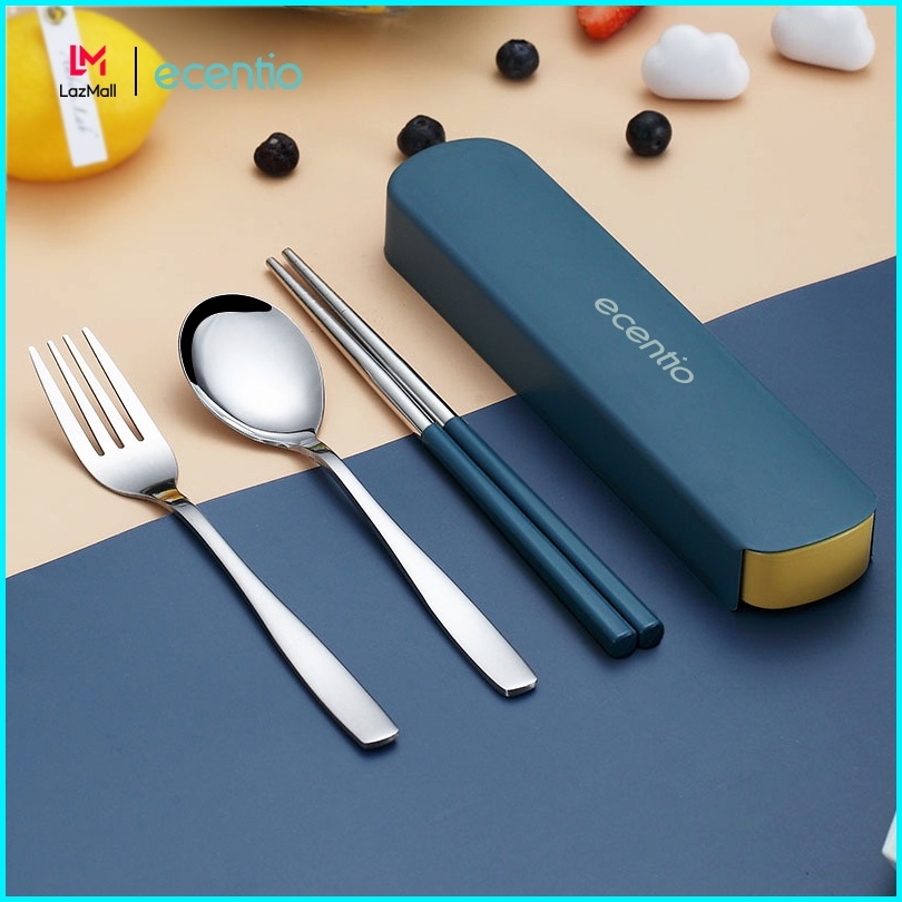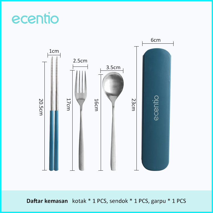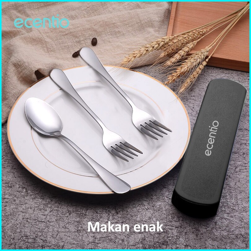 Ecentio Sendok Set Alat Makan Stainless Steel Cutlery Set 2 3pcs Set Makan Dengan Kotak Berbahan Stainless Steel Sumpit