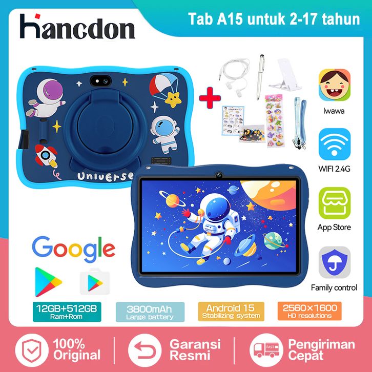 Hancdon Kids Study Tab A15 12GB/512GB 7.1 inch Tablet Anak Android Edukasi Wifi 5G Dual SIM - Garansi Resmi 1 Tahun