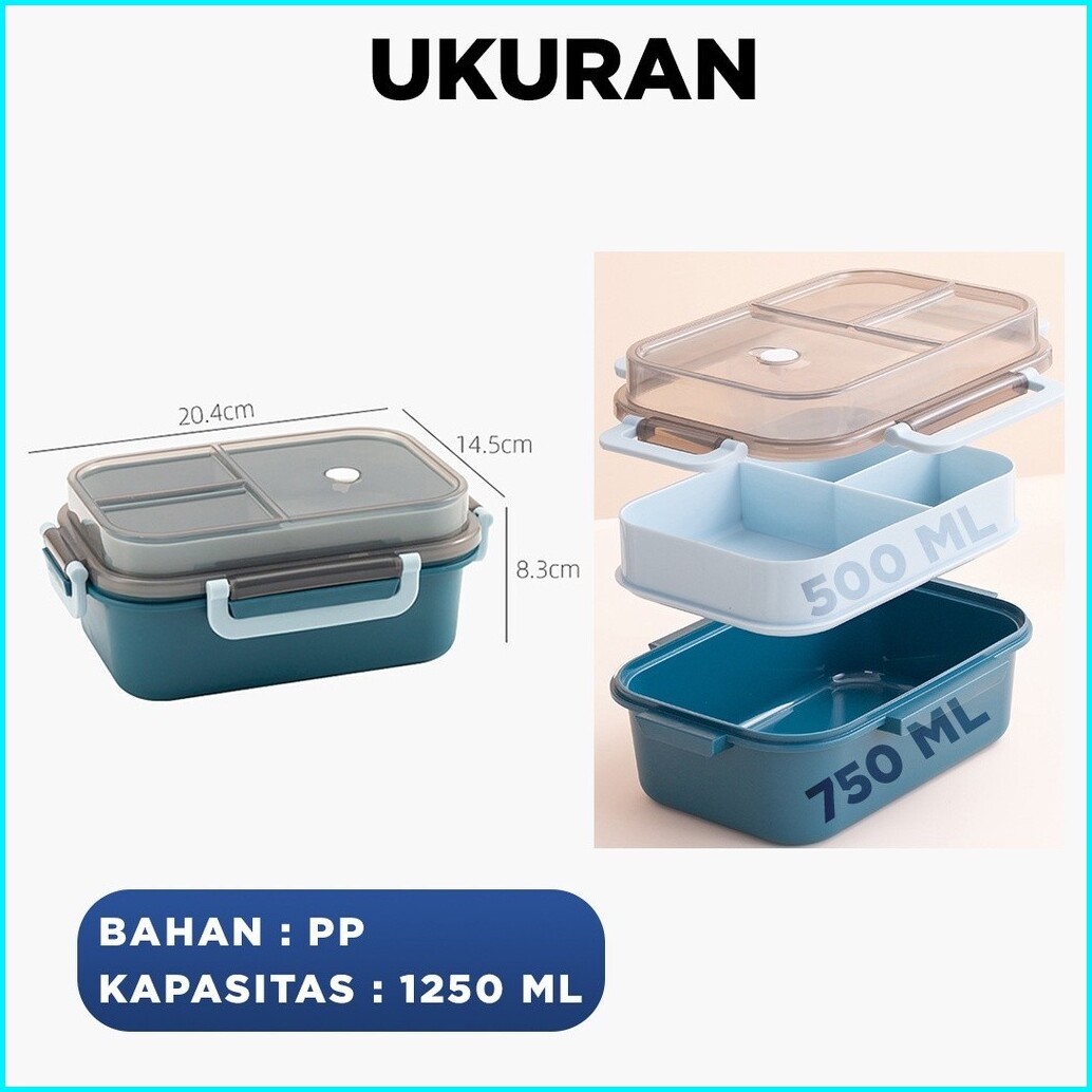 Eatkit 3in1 Lunch Box Set Kotak Makan 2 Tingkat 3 Sekat Anti Tumpah Lunch Box Susun Free Sendok Garpu Portable Bpa Free