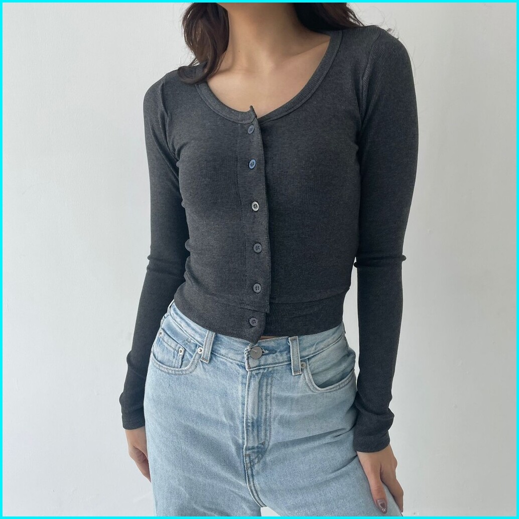December Top Atasan Knit Wanita Korean Top Baju Knit Wanita Lengan Panjang Basic Long Sleeve