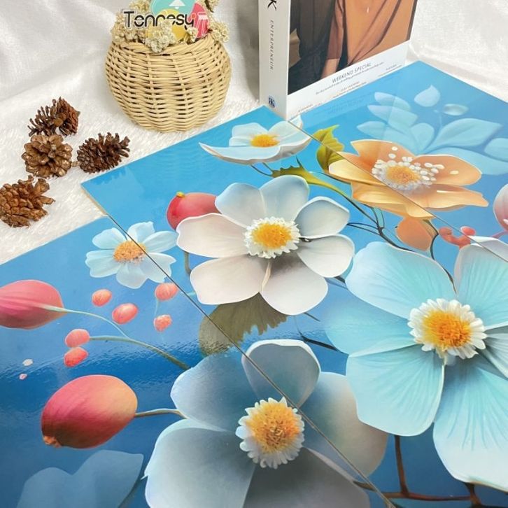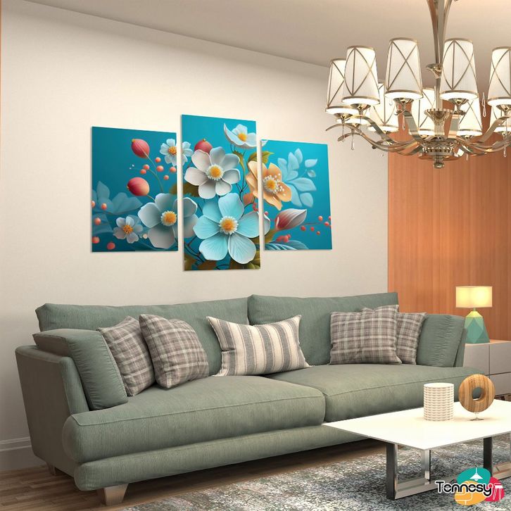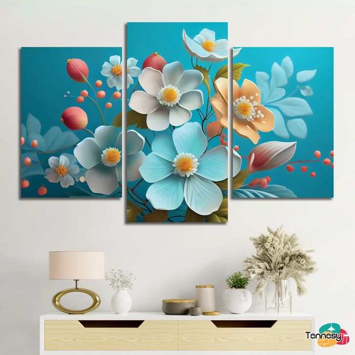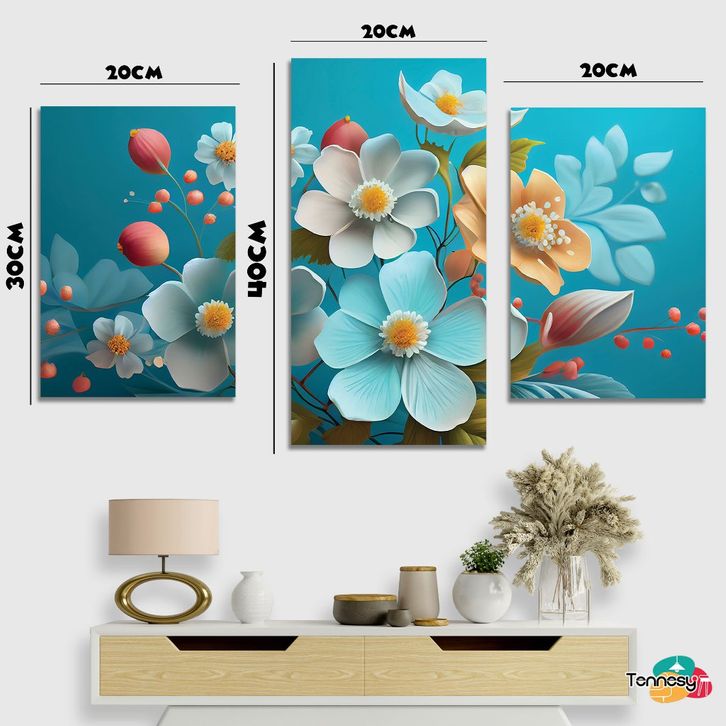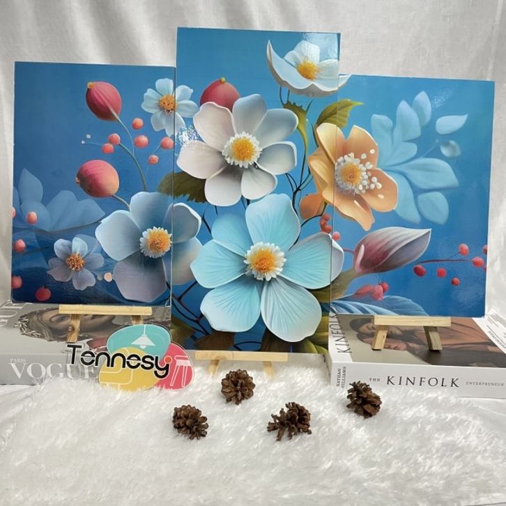(TERLARIS)Hiasan Dinding Set Bunga Biru Beautiful Springs 3D Flowers 3 Panel Besar Dekorasi Dinding