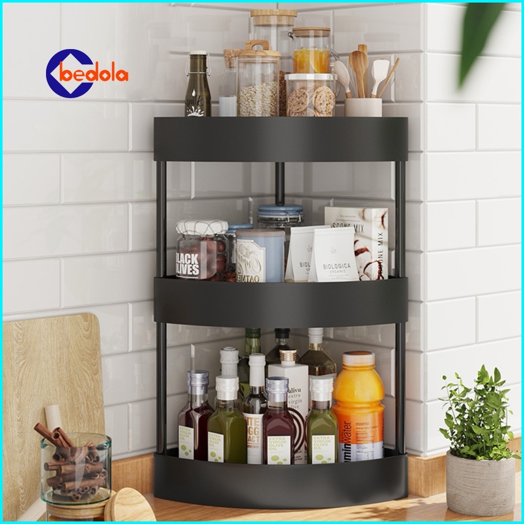 Bedola Rak Dapur Susun Sudut Rak Bumbu Meja Rak Kosmetik 3 Tingkat Tanpa Roda