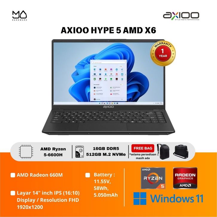 Laptop Axioo MyBook Hype 5 AMD X6 Ryzen 5-6600H RAM 16GB 512GB SSD - Garansi Resmi
