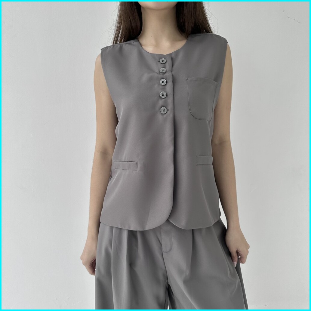 Terre Vest - Vest Outer Rompi Wanita Atasan Crop Top Murah Luaran Oversized Jacket Top Summer Posha