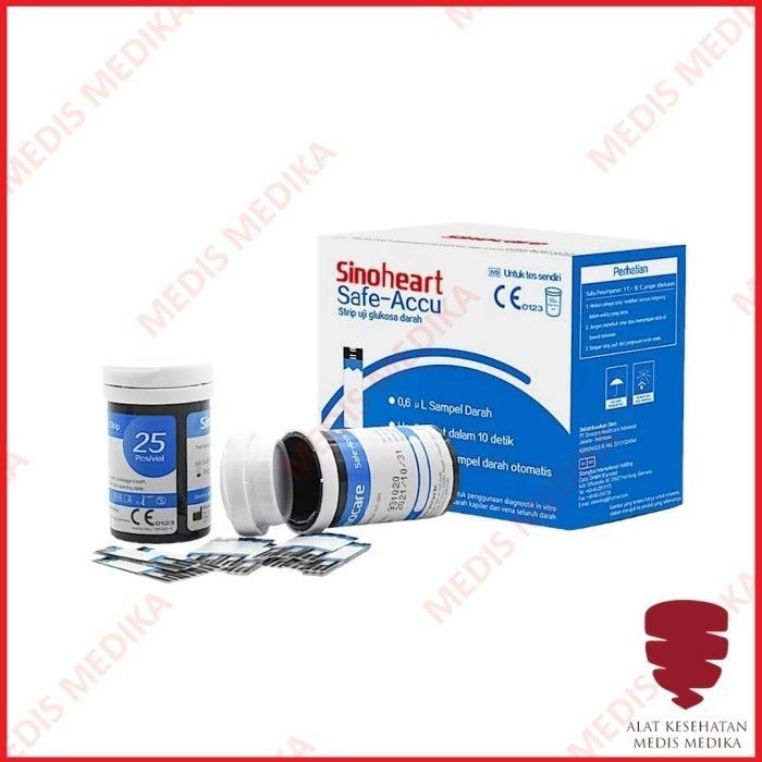 Sinocare Strip Cek Gula Darah Safe-Accu Isi 25 Test Uji Glucose Glukosa SINOHEART Refill Medis