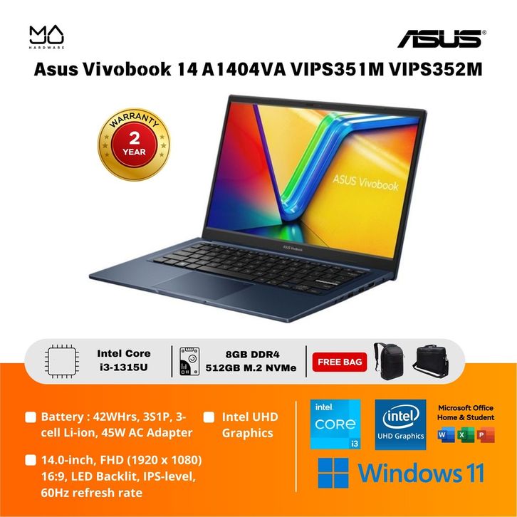 Laptop Asus Vivobook 14 A1404VA VIPS351M VIPS352M i3 1315U 8GB/512GB 14"FHD