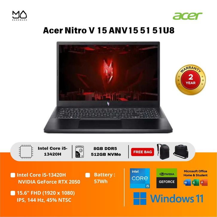 Laptop Acer Nitro V 15 ANV15 51 Intel i5-13420H 8GB SSD 512GB RTX2050 15.6" FHD W11+OHS