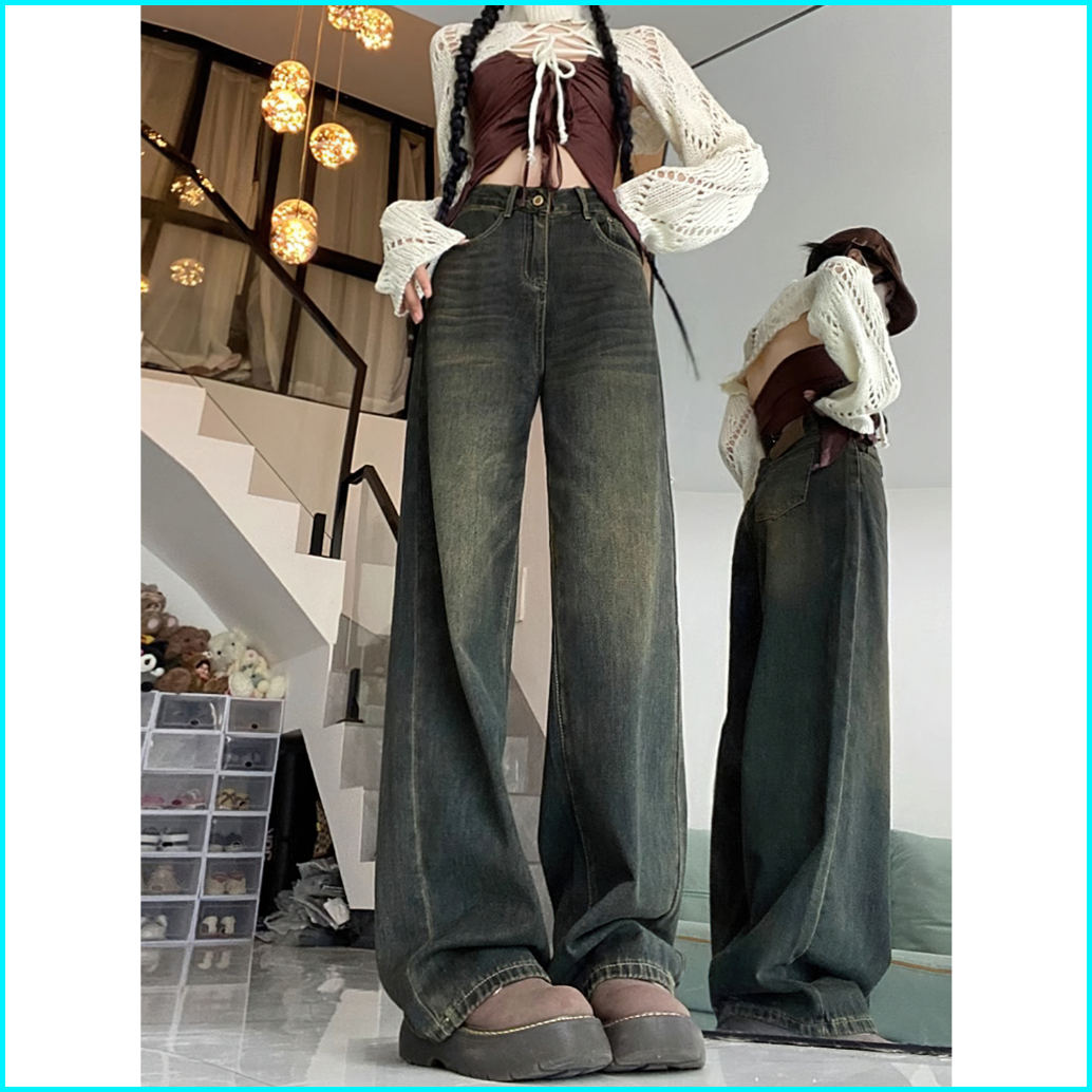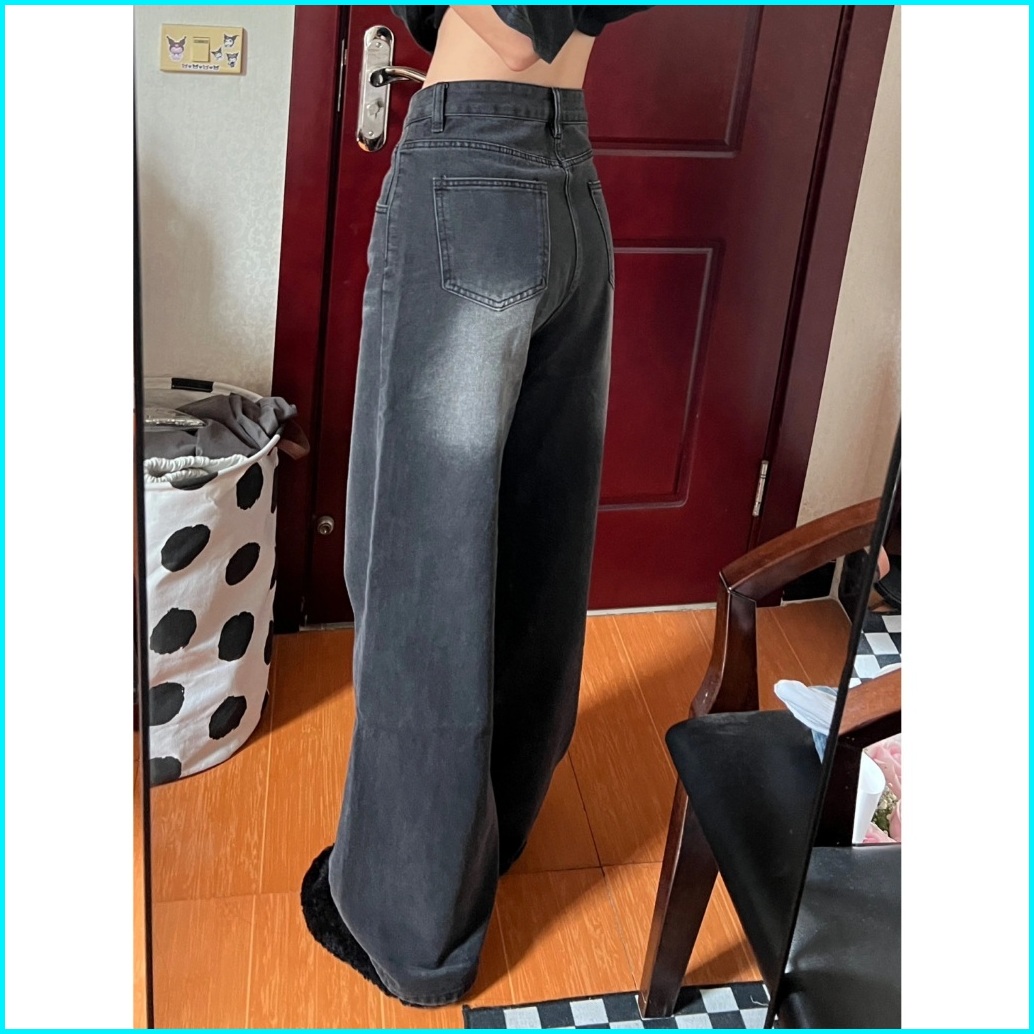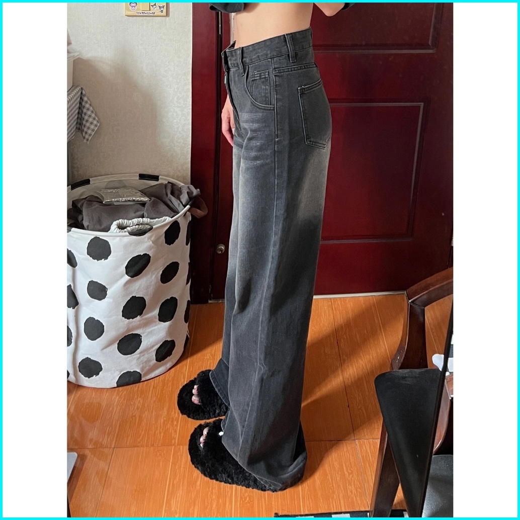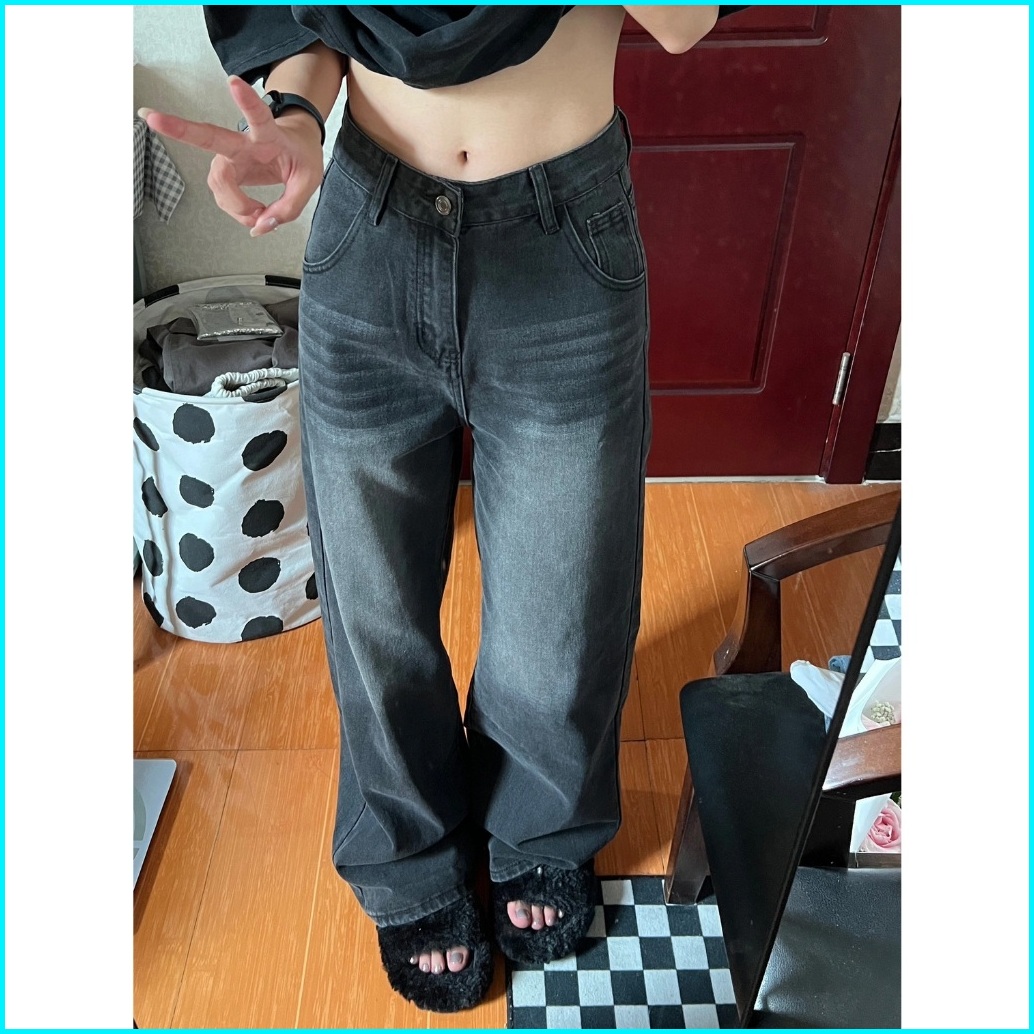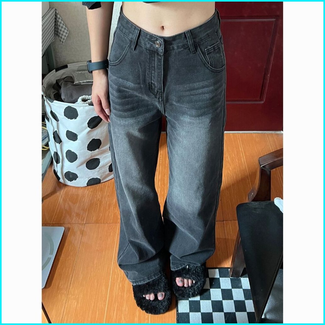 Abu-abu Highwaist Kulot Loose Jeans Celana Baggy Pants Wanita