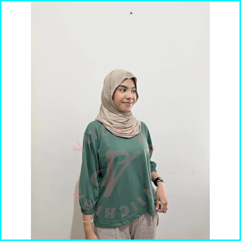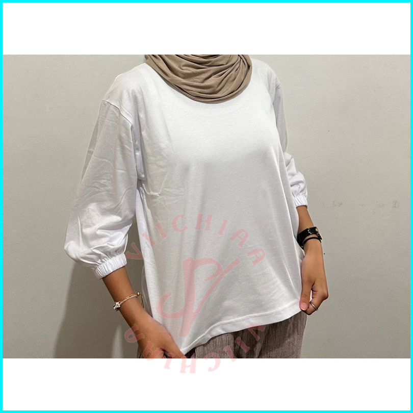 Atasan Kaos Bahan Katun Combed 30s Model Tangan Balon Hijab Dan Wudhu Friendly