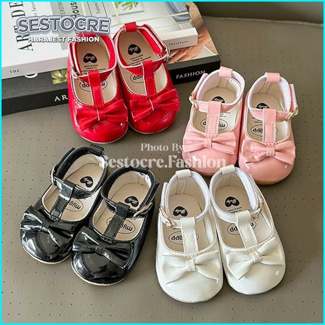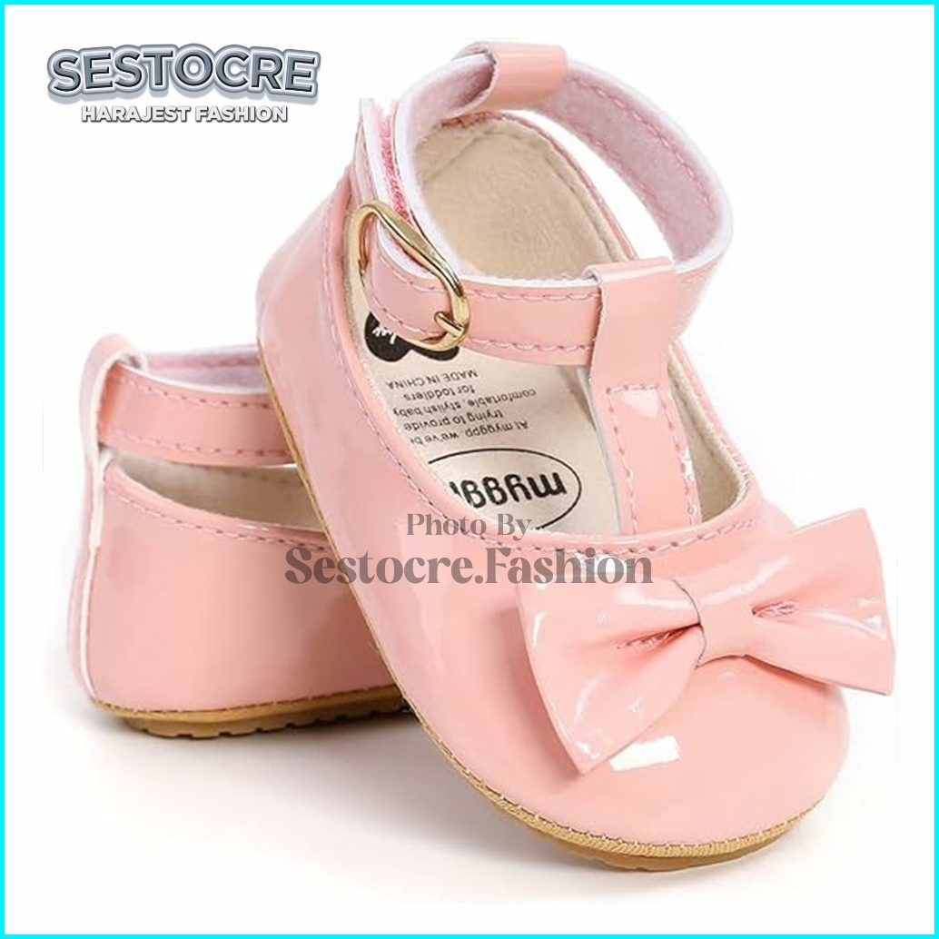 Sepatu Bayi Perempuan 0 12 Bulan Sepatu Anak Baby Shoes Prewalker Tali Pita Lucu Anti Slip Ringan Princess Shoes - Shf