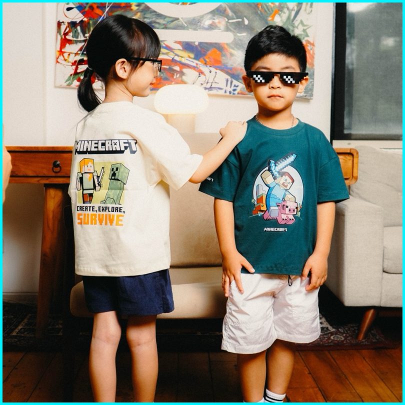 Playdate Baju Tshirt Kaos Minecraft Oversized Tee Anak Laki Laki Perempuan Katun Premium