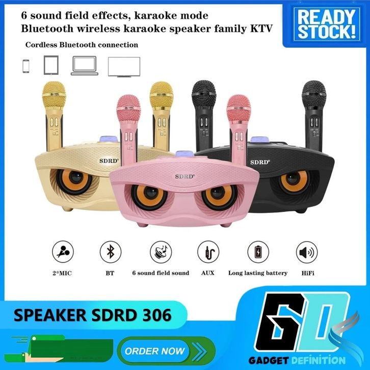 SDRD SD 306 SPEAKER KARAOKE BLUETOOH SDRD SD306 DENGAN 2 MICROPHONE WIRELESS