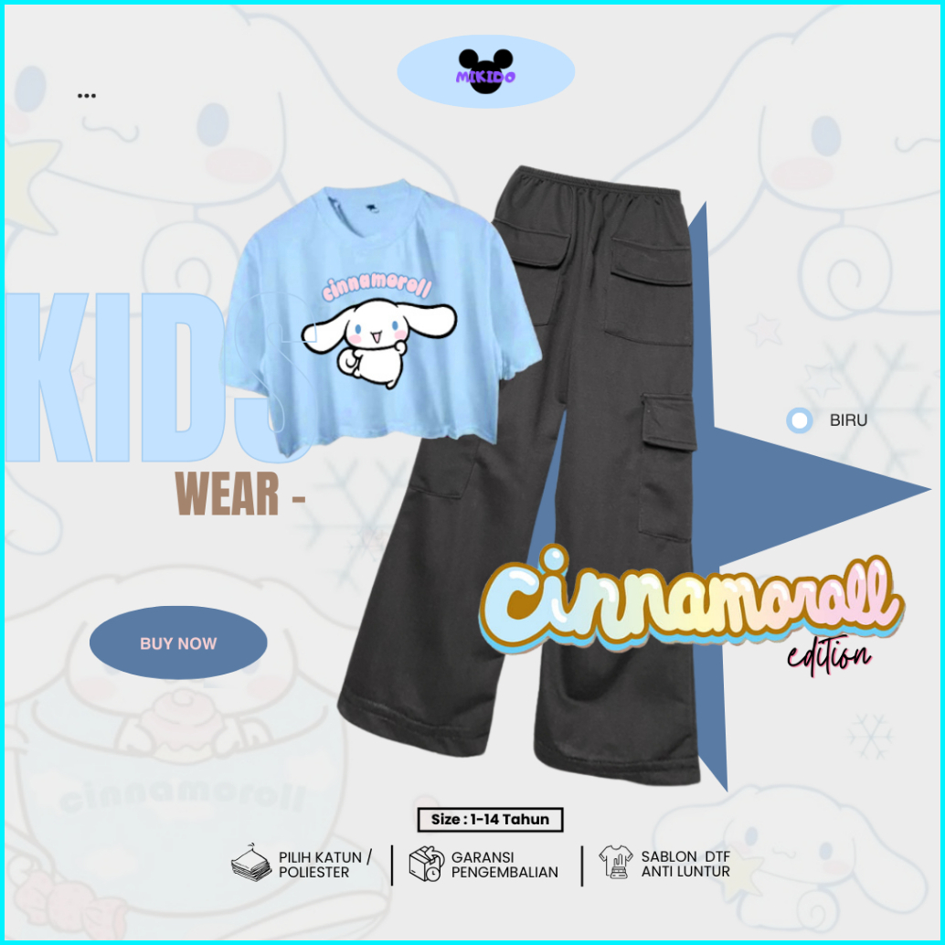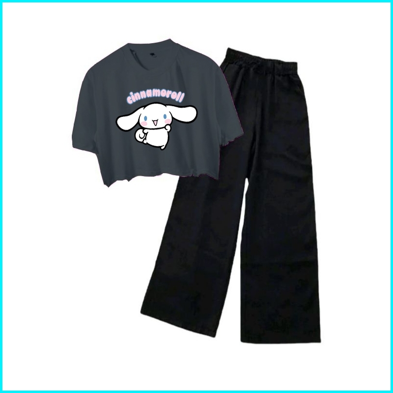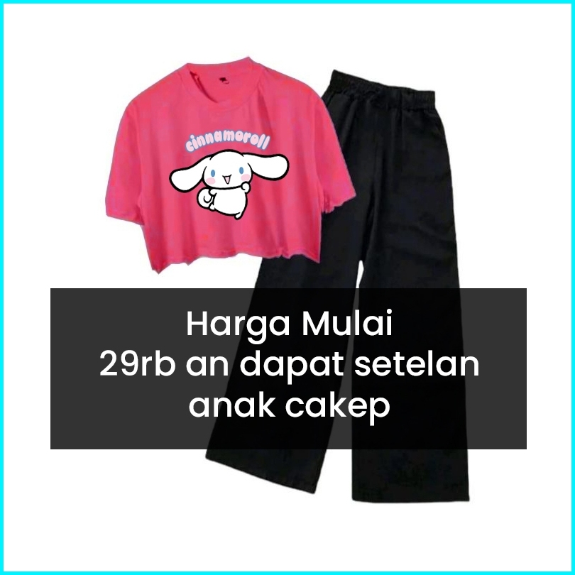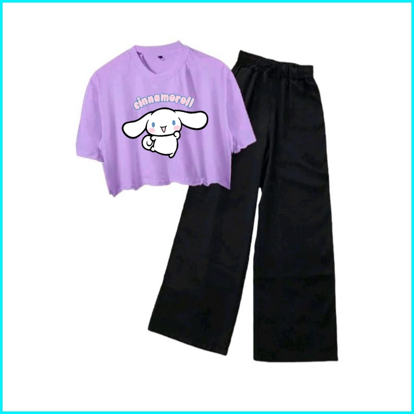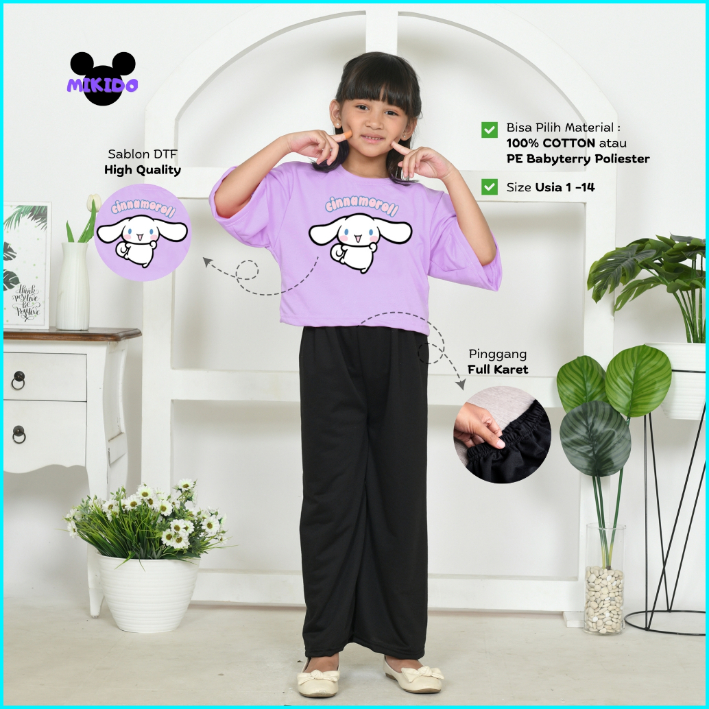 Setelan Crop Top Kulot Anak Perempuan Karakter Cinnamoroll Baju Set Cewek 6 8 10 12 14 Tahun